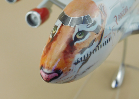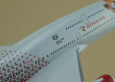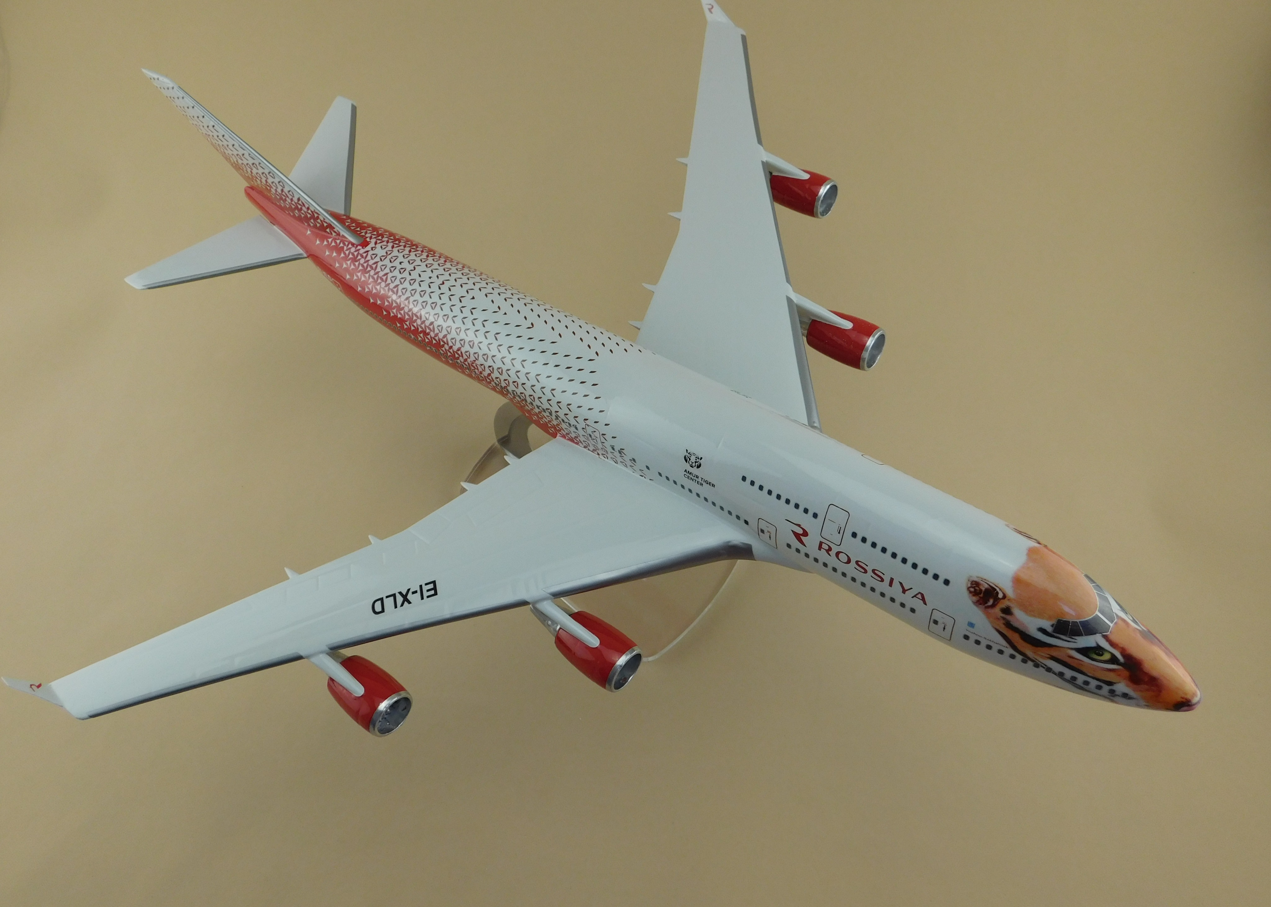 Коллекционная модель легендарного Boeing 747 в уникальной ливрее «Тигролёт» — летающем символе защиты амурского тигра. Специальный дизайн был разработан авиакомпанией «Россия» совместно с Центром «Амурский тигр» для привлечения внимания к сохранению этого редкого хищника.