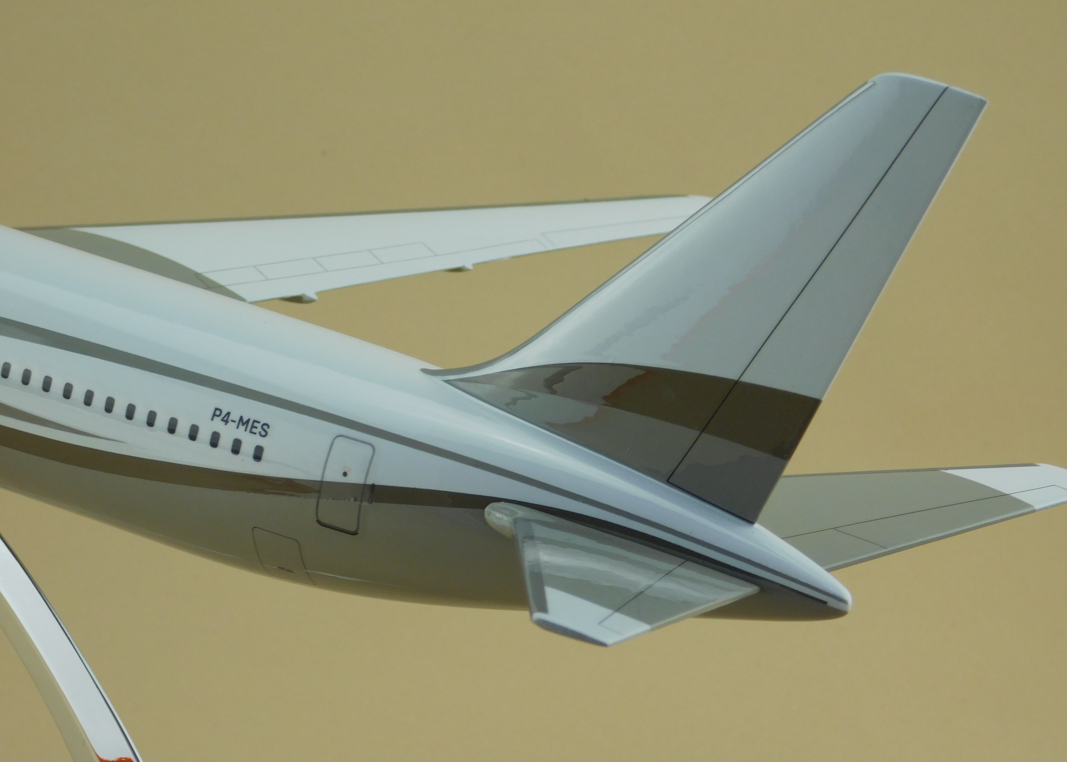 Эта уникальная коллекционная модель представляет собой знаменитый Boeing 767-300ER с регистрационным номером P4-MES, который принадлежал российскому бизнесмену Роману Абрамовичу.