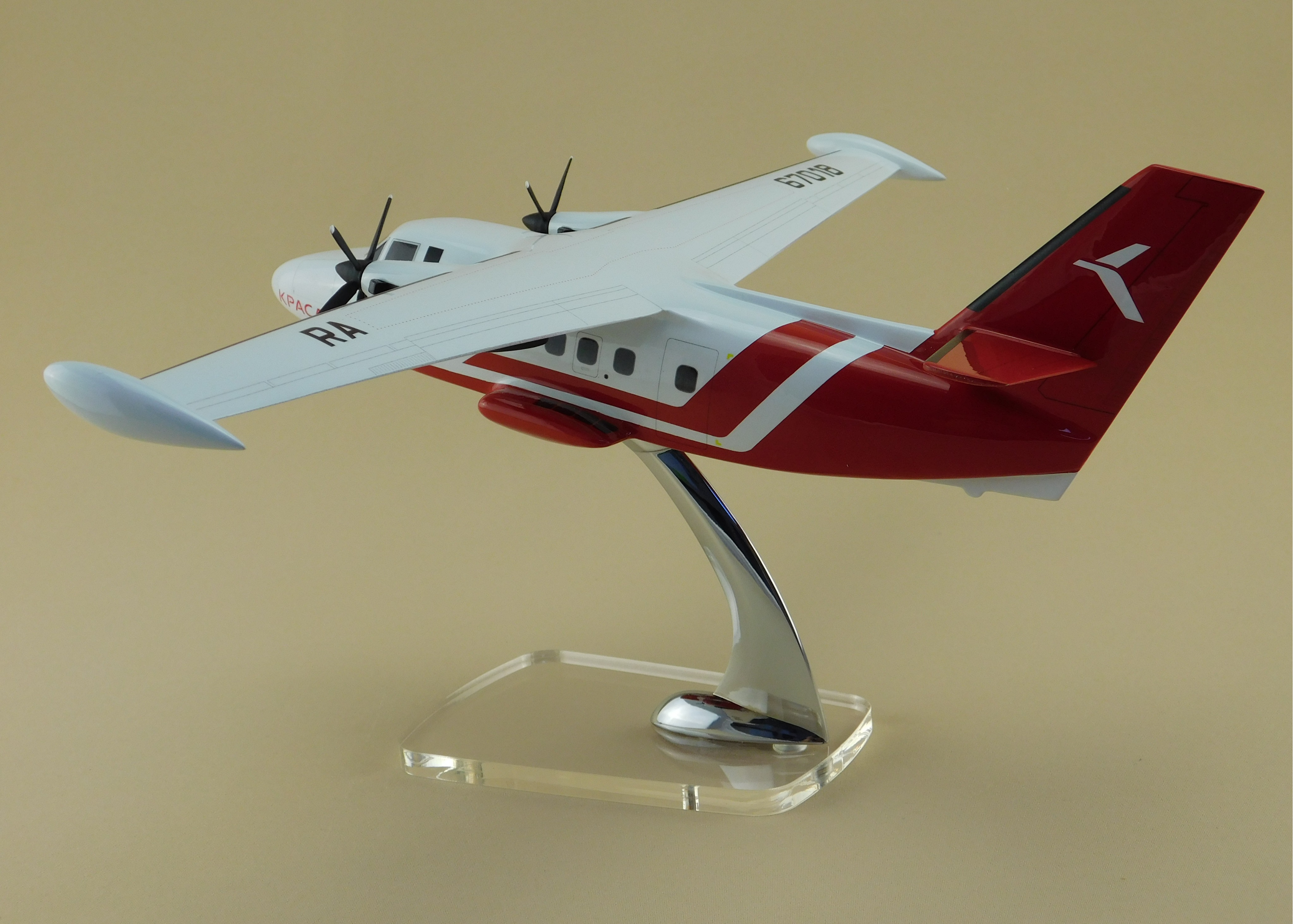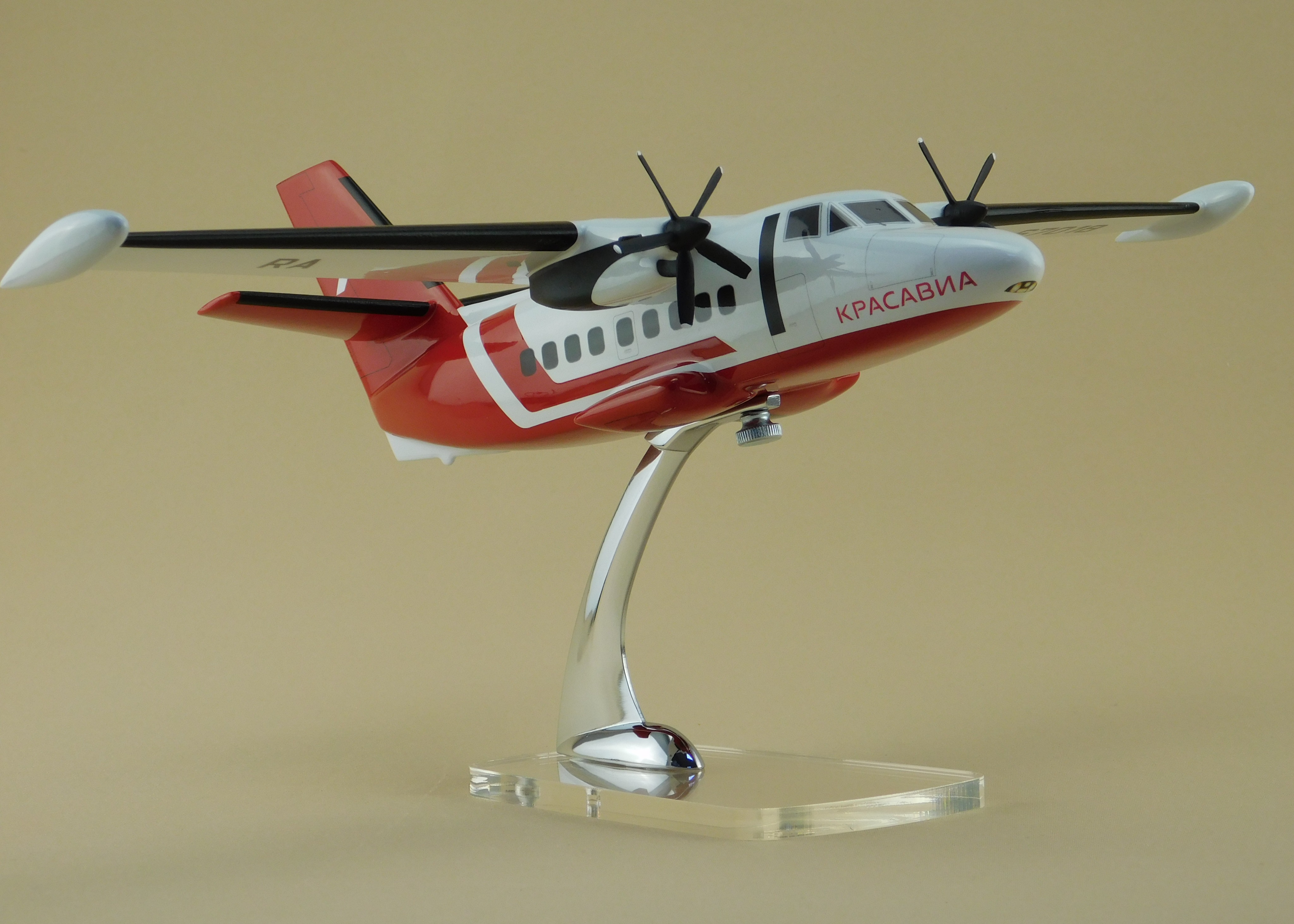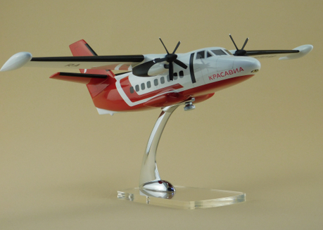Портативный турбовинтовой самолёт, покоряющий просторы Сибири и Крайнего Севера. Модель Л-410 в яркой ливрее авиакомпании «КрасАвиа» символизирует надёжность и доступность авиасообщения в самых отдалённых регионах России.